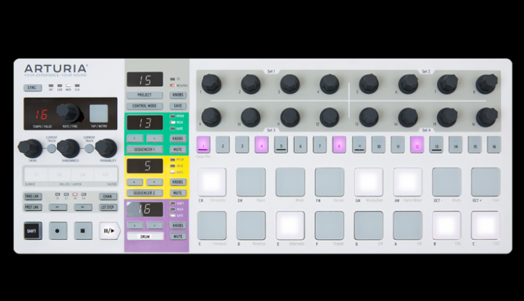 [Índice]A estas alturas ya es casi un clásico. Capaz de funcionar simultáneamente como controlador DAW gracias al soporte de HUI y MCU, como controlador MIDI genérico configurando sus pads, encoders y pulsadores, y capaz de ofrecer un secuenciador múltiple que cuenta con dos pistas de patrones de pasos para notas y una tercera para creación de patrones de ritmo. Y sin olvidar su enorme conectividad tanto USB-MIDI, como MIDI en DIN 5 puntas, y también dos juegos de salidas CV/Gate/velocity para sintes analógicos/modulares, 8 triggers para percusión analógica y sincronismo analógico.