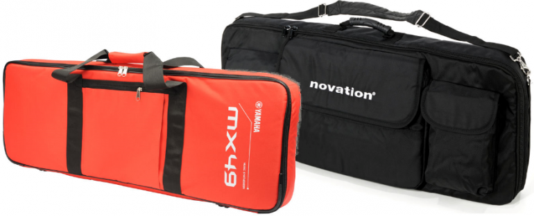 Para teclados de 49 teclas, me gustan el colorido rojo de una funda Yamaha para MX49 y la multiplicidad de bolsillos de la funda Novation.