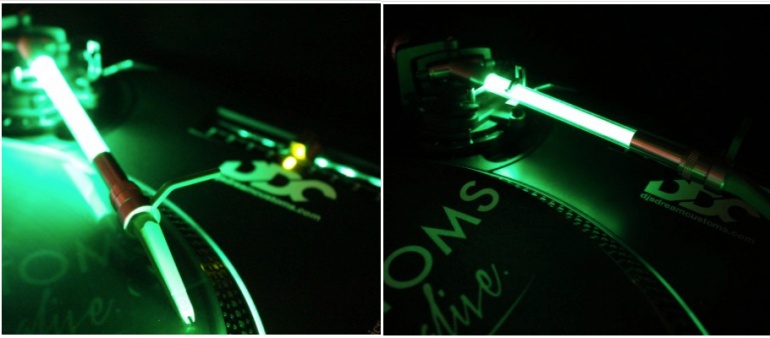 Finalmente, una de las modificaciones más originales que realizan es la inserción de iluminación en el brazo del plato en brazos rectos. Aunque en el Musikmesse no fue posible ver ninguna unidad con esta modificación, hemos rescatado un par de fotos de su web: