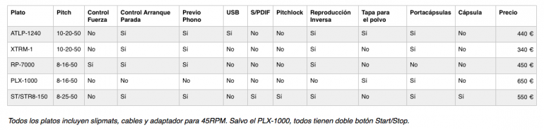 El precio del PLX-1000 es de unos 650€, es el OEM más caro, pero también el más personalizado –en aspecto y comportamiento– y en mi opinión el que tiene mejor diseño de todos. Trae todos los complementos: tapa para el polvo, cables, portacápsulas y slipmats. ¿Merece la pena pagar más por eso? Nuevamente volvemos a cuestiones cuya valoración es muy subjetiva y personal. Por un lado es quizá lo más parecido a un Technics de todo el mercado siendo en el fondo un OEM, pero si lo comparas con los otros OEM, es el que menos funciones incluye.