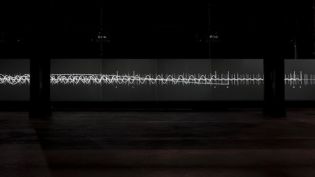 Traemos esta pieza a colación quizás porque es la más representativa del trabajo del arista y nos permite a su vez reflexionar sobre diferentes elementos que convergen en el arte audiovisual de nuestros días, donde no solo hallamos conceptos como el espacio, el tiempo, los sistemas, la geometría o la luz, sino que además se evidencia una profunda relación entre arte y ciencia que nos lleva a nuevos entendimientos del sonido como fenómeno físico, o al menos nos refleja estados del mismo que de otra manera no serían tan evidentes.