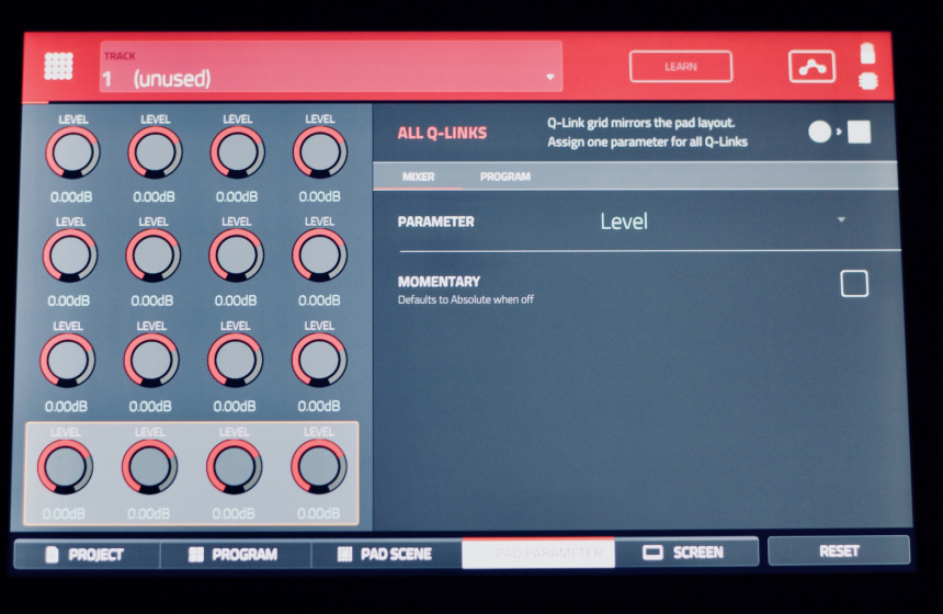 Otro punto mejorable en el uso del dispositivo es la asignación de los controles Qlink del lado derecho, puedes aprovecharlos para controlar cualquier parámetro de los elementos que tienes sonando –un filtro, un tiempo de delay…– pero su asignación la encontré algo farragosa y a veces me he perdido un poco intentando llegar hasta un parámetro concreto. Por otro lado, el tener sólo cuatro en este modelo hace que si los empleas quieras cambiar mucho su asignación, con lo que a veces puedes volverte algo loco. Imagino que es una cuestión de mucha práctica continuada, pero me temo que este es un punto en que los más novatos con estos dispositivos se pueden perder en muchas ocasiones.