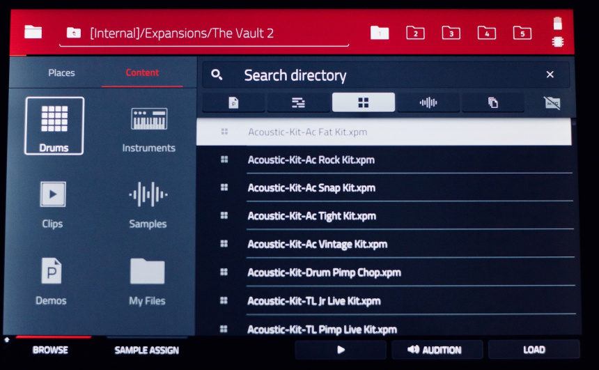 Bien, como explicaba antes la interfaz es amigable y bastante intuitiva, especialmente si ya has manejado máquinas similares a esta o te defiendes con algún DAW. Los más novatos tendrán que realizar consultas al manual, tampoco pidamos milagros. La cuestión es que bastante rápidamente puedes cargar un programa con un buen número de muestras –Akai ha conseguido incluir unas muestras muy apropiadas para estilos actuales de música electrónica– y estás grabando en tiempo real secuencias. Tardas relativamente poco en atreverte a pasar de los programas ya preparados y a empezar a crear tus propios programas combinando muestras de unos y otros programas, y en cuanto descubres que puede pinchar un pendrive con tus muestras y cargarlas ya estás creando programas 100% tuyos. Si no eres bueno interpretando con los pads o con un controlador que conectes al aparato no pasa nada, tienes un secuenciador por pasos también muy simple de usar.