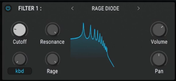 Llegan también el nuevo Rage filter que incorpora en el camino de realimentación del filtro una distorsión ajustable y con diferentes sabores, haciendo que sus reacciones a los cambios en la resonancia o la frecuencia de corte del filtro sean mucho más destacados y dinámicos, y alcanzando si se desea lo agresivo.