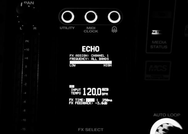 Por su parte, los BPM FX también ofrecen resultados jugosos. Se seleccionan mediante un encoder bajo la pantalla y en total son 14 y tienen la peculiaridad de además de poder elegir el típico nivel de wet/dry, poder seleccionar fácilmente con un potenciómetro el rango de frecuencias a las que se aplica el efecto. De esta manera puedes aplicar un flanger únicamente a las frecuecias altas de la canción, o aplicar un efecto trans de corte sólo a las frecuencias bajas –bombo, bajo, etc–, quedando el resto intactas. Además, como ya he comentado antes dispones de un potenciómetro y una tira táctil para alterar la fracción de tempo a la que se ajusta el efecto. No entraré a comentar los pormenores de todos y cada uno de los efectos y simplemente reseñaré los que me han parecido más logrados y creativos:
