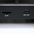 [Índice]El dispositivo cuenta con tres puertos USB 3.0 tipo A para la conexión de dispositivos de almacenamiento, dos en el panel trasero –algo incómodo acceder a ellos– y otro ubicado en un hueco frontal que hay entre las patas. Junto al puerto frontal hay una ranura para tarjetas SD con música. En este hueco frontal donde está el puerto USB y la ranura SD hay una luz led blanca para facilitar el conectar las cosas.