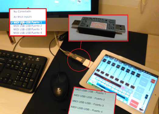[Índice]Me llegó el primer prototipo de este dispositivo cuando se cerraba su fase de proyecto pero a tiempo de sugerir que la idea inicial de un único puerto se hiciera crecer a los 4 que lleva actualmente. De esa forma no es necesario ni siquiera andar planificando el reparto de canales MIDI y podemos rápidamente integrar en un entorno único múltiples aplicaciones que estén ejecutándose en dos entornos diferentes de computación como PC, Mac, Linux, iOS, etc.
