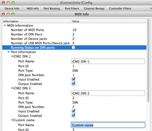 [Índice]En ambos sus capacidades para MIDI resultan generosas e interesantes. Cada uno cuenta con conexiones MIDI DIN 5 puntas que le dan apariencia de un interfaz MIDI – USB pero van mucho más allá. Hacen honor a su nombre ‘yo conecto MIDI’: ruteo inteligente entre un sorprendentemente alto número de puertos MIDI en diversos formatos que pueden estar sobre DIN5P, USB o como puertos reales o virtuales sobre ‘hosts’ Win y Mac o incluso iPad/iPhone, incluso remotos vía sesiones Ethernet/Wifi.