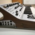 [Índice]El acabado y construcción resulta elegante y cómodo, muy usable. Las tres octavas de teclado tienen buena pulsación, cuentan con velocidad y aftertouch (un aftertouch muy controlable, que arranca más allá de la posición normal de final de recorrido de la pulsación de la tecla), y existen botones dedicados para octavación, legato, glide, y para la prioridad (qué nota suena al tocar varias), y que es agradable encontrar en botones dedicados para uso inmediato durante la ejecución. Lo mismo con los ‘multitrig’ y ‘reset’ de las envolventes. Tener a mano incluso esos parámetros ‘de detalle’ se agradece.