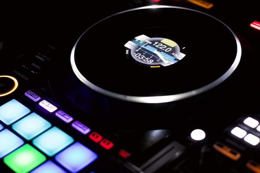Todo el mundo estuvo esperando estos años un nuevo controlador para Rekordbox que volviera a integrar unos jogs exactamente iguales a los de los reproductores CDJ de gama alta y que contara con una sección de mezcla que replicara las mesas DJM y además funcionara de forma autónoma. Finalmente el pasado invierno llegó el DDJ-1000 y el sector se puso literalmente del revés. No sólo el controlador integraba todo eso que mucha gente demandaba, si no que rebajaba el precio de los 1.990€ que habían estado costando sus controladores de gama alta a unos 1.200€, logrando un producto al alcance de muchísima más gente. Y por si no fuera suficiente los jogs de este nuevo dispositivo incorporan una novedad bastante significativa: en su parte centro se reemplaza el icónico display que marcaba el “giro virtual” de reproducción por un display a todo color que muestra mucha más información adicional.
