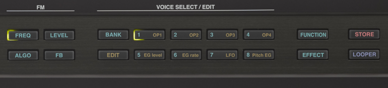 Con todo, está claro que se consigue variar mucho el timbre sobre cualquier sonido prexistente haciendo tan sólo uso del control de realimentación de los cuatro operadores. Pulsar el botón 'FB' lleva al panel táctil precísamente esos 4 ajustes de automodulación. Otro tanto podría decirse del botón 'level'. Ambos facilitan dar/restar brillo y riqueza armónica a los sonidos sin meterse en excesivas complicaciones, algo que los demostradores de Yamaha están enfatizando como forma de hacer retoques intuitivos sin necesidad de adentrarse en mayores profundidades de este tipo de síntesis.