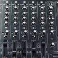 En la parte superior derecha cuenta con dos dobles vúmetros de 12 segmentos, uno para la preescucha y otro para el master. No hay vúmetros por canal, aunque en la parte superior de cada canal tenemos dos indicadores luminosos para saber si está entrando audio al canal y si está distorsionando rotulados como SP y Peak. Cada canal tiene interruptor de selección de fuente, EQ de 3 bandas que va de -30 a +10db, botón de preescucha, envío a efectos con interruptor para seleccionar si es pre o post fader y asignador de lado del crossfader.