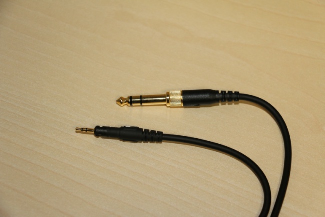 Como es costumbre, el cable es jack 3,5mm con rosca de sujeción para incorporar el adaptador de jack 6,35mm. En el otro extremo tenemos un conector estéreo de jack de 2,5mm con un sistema de sujeción que evita que se desconecte por culpa de un tirón indeseado.