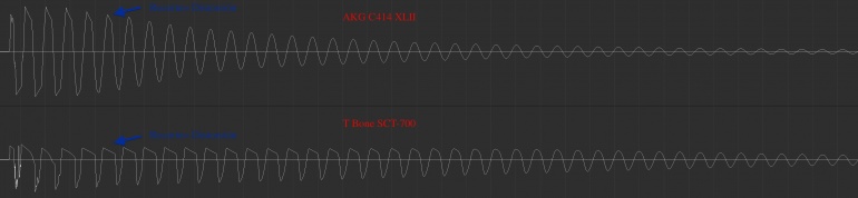 Aquí podemos comparar visualmente la cantidad de distorsión de ambos micrófonos: