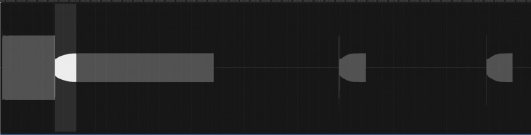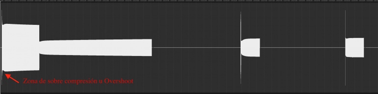 Ajustamos a tiempos mínimos. Podemos oír claramente la distorsión causada por el limitador.