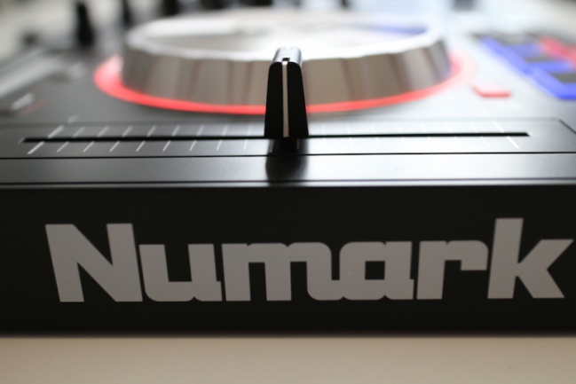 [Índice]Empecemos por los controles de mezcla. Tenemos en cada uno de los dos canales un fader de 45mm y cuatro potenciómetros, tres para la EQ y uno para el control de filtro. Los faders son iguales que los que ha usado siempre Numark para su gama Mixtrack, algo duros de mover, con los capuchones fino. Los potenciómetros son pequeños y con capuchones de plástico sin recubrimiento alguno de goma; a pesar de su pequeño tamaño no son difíciles de usar dado que tienen un nivel de dureza bastante adecuado. Ya os habréis dado cuenta de que no hay potenciómetro de ganancia, una malsana costumbre de los fabricantes actuales que hacen que parte del peso de la mezcla recaiga en la función “autogain” del software, que aunque es eficaz, no deja de ser un mal hábito para principiantes que no saben controlar el nivel de las señales y que pierden la oportunidad de aprender a hacerlo.