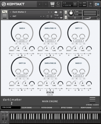 [Índice]Dark Matter es una librería para Kontakt 5.5.1 y superior, que aúna una enorme librería de sonidos junto con un motor de tratamiento de las muestras muy novedoso. En realidad, más que un motor, son cinco motores en uno, con la posibilidad de modificar en tiempo real todos los parámetros o de aleatorizarlos fácilmente. Tiene un peso en el ring de 35GB (21GB con el formato de compresión de NI), más de 5000 muestras, más de 340 snapshots, y los mencionados motores.