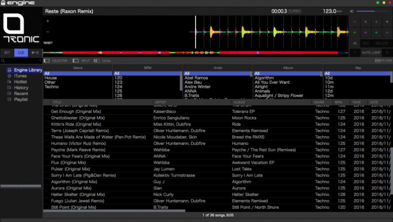 Al analizar las canciones, a pesar de que Engine tiene una columna para mostrar la tonalidad y el MCX8000 la muestra en modo de reproductor, el programa no la analiza realmente. Sólo ves la tonalidad si has analizado la canción con otro programa y el tag key quedó con dicha información. Por otra parte, tras analizar las canciones aparece sobre la forma de onda el beatgrid de la canción, momento a partir del cual el desplazamiento de la forma de onda por la pantalla del ordenador se empobrece notablemente. Estos problemas gráficos también se observan al navegar por la librería, hacer scroll lateral o cambiar el tamaño de las columnas de información; gráficamente todo va a trompicones, y las pruebas se hicieron con dos Macs con procesador i5 a 2.5ghz y 16gb de RAM, potencia de sobra para mover un gestor de música.