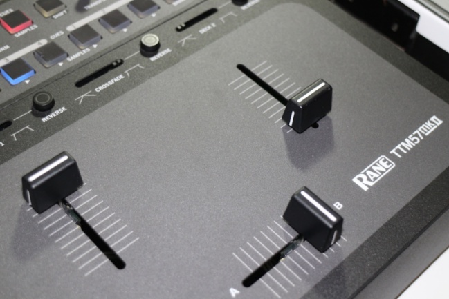 Los faders y el crossfader son los fantásticos faders magnéticos sin contacto de Rane, los tres son iguales y tienen la misma tensión, pueden intercambiarse entre si y la sustitución la puede hacer fácilmente el usuario. Aunque la tensión no es ajustable creo que la tensión que emplean satisfará a bastante gente, no son los más suaves que existen –el Magvel Pro por ejemplo se puede ajustar un poco más suave– pero por contra Rane hace siempre gala de que sus faders son para toda la vida.