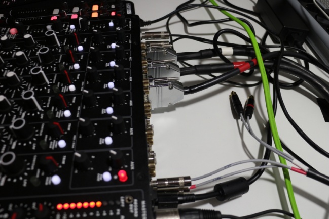 Los D-SUB son útiles para poder cablear de una sola vez y rápidamente todo el conjunto de conexiones en situaciones de touring y en el caso de que dispongas de un interfaz de audio con dicho sistema de conexionado. Además, al ser conexiones balanceadas están más aisladas de interferencias, y empleando este tipo de conector se obtienen +2dBu extra de margen dinámico. En el caso concreto del setup que empleamos para la review, el interfaz de audio no disponía de conexiones D-SUB, pero Rafa Siles emplea igualmente mangueras hechas por encargo que en un extremo son D-SUB y en el otro conectores TRS para el interfaz Fireface, y ciertamente aunque sólo el 50% de las conexiones eran DSUB, se ahorra tiempo. Eso sí, empleando este tipo de conectores tienes que asegurarte de que están perfectamente encajados y alineados –Rafa me recalca esto bastante– y dado el grosor de las mangueras y que son menos flexibles que cables normales, debes tener un buen espacio tras la mesa allí donde la montes. Adicionalmente los canales para envío y retorno cuentan con conexiones balanceadas en formato TRS.