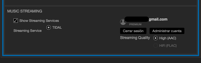 [Índice]En primer lugar debes introducir tus credenciales de Tidal en el apartado Biblioteca de las preferencias. Una vez hecho esto aparecerán tus playlists de Tidal en la librería musical de Serato. Al cargar una canción, Serato descarga toda la canción entera de Tidal y la analiza, guardando localmente la información de la pista, de forma que aunque cada vez que abras Serato necesites descargar una canción de internet para poder usarla, el análisis estará ya realizado.