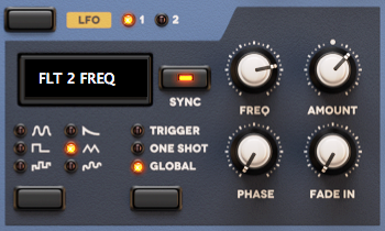 Como modos de disparo aparecen TRIGGER individual para cada nota, GLOBAL para aplicar un único LFO compartido por todas las notas, y ONE SHOT, útil para impartir efectos en el ataque de las notas y, tal como hemos comentado ya, también para contar con unas pseudo-envolventes de tipo puro decay que pueden tener múltiples usos.