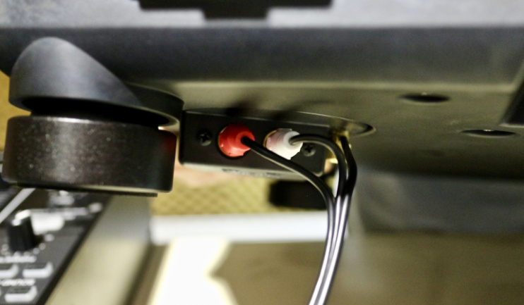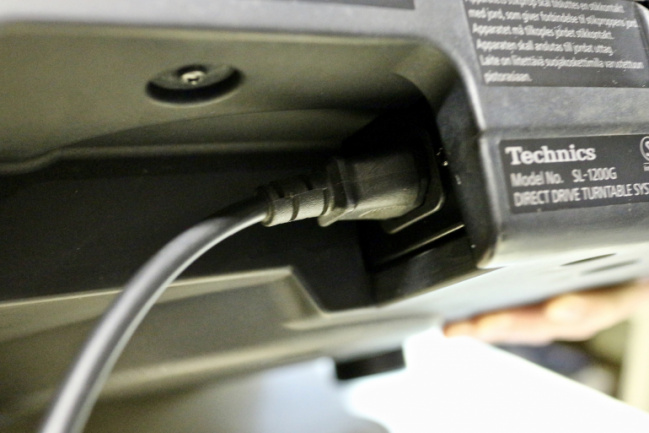 Estos platos a diferencia que los antiguos Technics y al igual que todo el resto de platos que se comercializan para DJs actualmente, cuenta conectores para el cableado en lugar de llevarlo soldado. Así pues tenemos una conexión RCA para el audio, un terminal para la toma de tierra y un conexión IEC de alimentación. Las conexiones están bajo los platos y son realmente puñeteras –hablando claro– de usar, ya que debes poner el plato totalmente vertical para conectar los cables –todos incluidos– en su sitio.