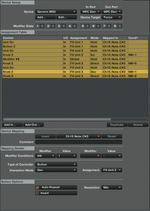 Hay una opción también bastante desconocida dentro de las funciones de mapeo, y es el Auto Repeat. Esta opción aparece al asignar funciones a botones, y sirve para que el programa convierta una pulsación larga de un botón en múltiples pulsación, igual que si pulsáramos rítmicamente el botón. Lo bueno es que combinando esto con las opciones de incremento y decremento de un parámetro, logramos automatizar dicho parámetro mientras dejamos pulsado el botón.