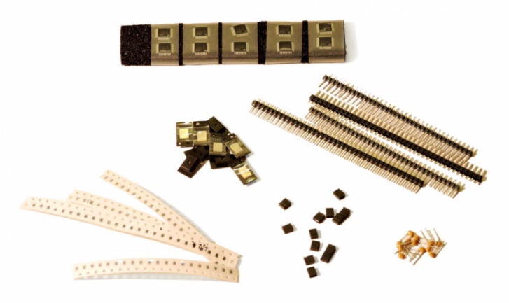 [Índice]Estos son los componentes que han de soldarse en el PCB. Al hacer el pedido es importante prestar atención al tipo de encapsulados. La mayoría de componentes son SMD (de montaje superficial). Se recomienda echar una ojeada a las fotos que acompañan a este tutorial para estar seguro de que se piden los encapsulados correctos. Estos son los componentes del nano SwinSIDb: