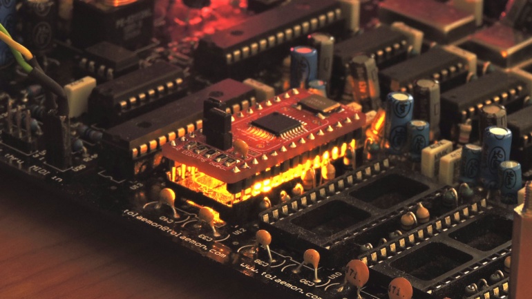 [Índice]Una vez montado, para comprobar que el nano SwinSIDb funciona correctamente, hay que instalarlo en un Commodore de 8-bits o en cualquier sintetizador que haga uso del SID, y reproducir en este alguna melodía o sonido (probar los diferentes canales, filtro etc). Recordar poner los jumpers en la configuración correcta:
