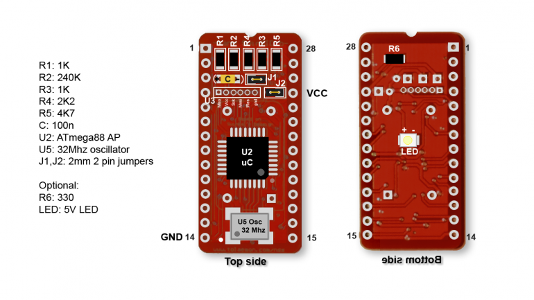 - Opcional: SMD en formato 0805, R6: 330 y 5V LED.