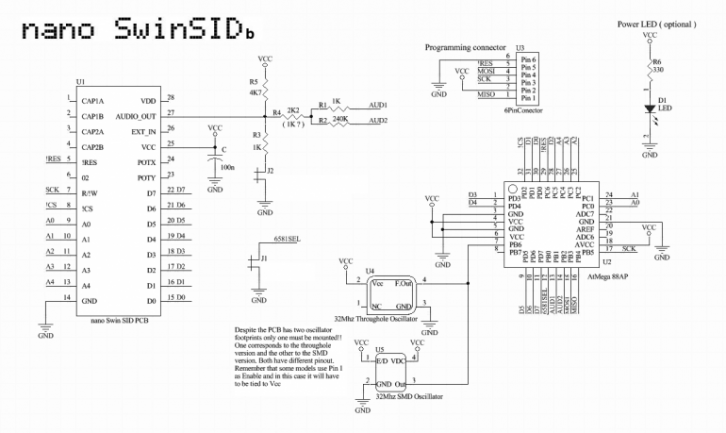 [Índice]Este tutorial explica paso a paso cómo construir el Nano SwinSID, un clon del SID. SID (Sound Interface Device) es el sobrenombre con el que se conoce a los chips de sonido MOS6581 y MOS8580 utilizados en prácticamente todos los ordenadores de 8-bits de Commodore en los años 80 y principios de los 90, y más tarde también en algunos sintetizadores como el SIDStation.