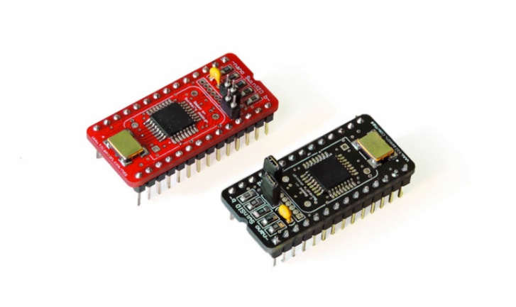- Tira de pines: throug-hole de 2.54mm de paso, 2 x 14 pines. Para evitar problemas al insertar el clon en algunos zócalos más estrechos se recomienda el uso de tiras de pines torneados.