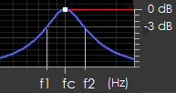 donde fc es la frecuencia 'central' y f2 y f1 las frecuencias superior e inferior en las que la ganancia dista 3dB de la que se presenta en ese punto central fc, todas ellas descritas en Hz.
