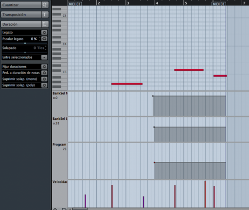 Otra posibilidad es introducir los mensajes en el típico editor de lista de eventos. Recordad hacerlo en orden: banco MSB y LSB y sólo después el program change.