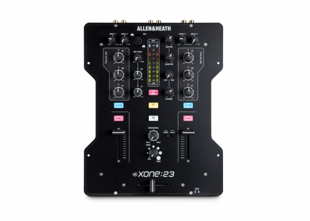 - Allen & Heath Xone:23 : dos canales, totalmente analógico, con el clásico filtro de A&H y además posibilidad de conectar una unidad de FX externa. Compatible con Innofader. De los tres mixers que recomiendo este es el único que no cumple con la recomendación de vúmetros independientes para master y canales.