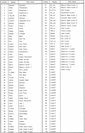 En el modo ‘PCM’, la estructura de un parcial era comparativamente más simple: adiós al filtrado y el WG no ya dedicado a generar ondas cuadrada o diente sino a reproducir una muestra elegida de entre el centenar que llevaba pregrabado en su memoria.