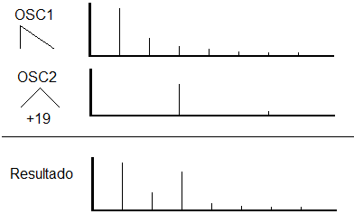 Se trata de que usemos un segundo oscilador para reforzar algunos armónicos del sonido que está produciendo el primero, situándolo en el intervalo necesario. Así +19 semitonos (una octava y siete semitonos) es lo que se necesita para reforzar el tercer armónico, por ejemplo. Para este uso formas de onda ‘delgadas’ en armónicos suelen ser útiles, tales como senoides y triangulares. También las cuadradas, que aunque generosas en armónicos, los tienen distantes entre sí y pueden usarse con estos fines.