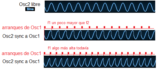 Por eso es bastante más habitual usar sync con ajustes que hacen la frecuencia del osc2 (esclavo) más alta que la del maestro.