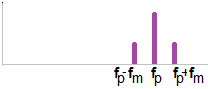 En definitiva tenemos que el espectro de la señal AM tiene una componente que es un seno de frecuencia fp, y otras dos con frecuencias fp-fm y fp+fm. Sería algo así: