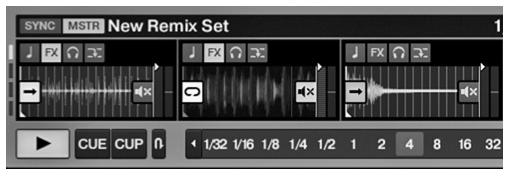La sincronía entre los reproductores normales tipo TrackDeck y los Sampler/Remix-Decks puede ser adaptada tanto de forma automática con el SYNC, como de forma manual, actuando como lo haríamos sobre cualquier reproductor musical normal, empujando la rueda jogwheel, sólo que lo que estará sonando no es una canción sino un conjunto de samples reproducidos de forma conjunta. Podemos ver que el reproductor está equipado con medidor de fase para comprobar su adelanto o retraso con respecto al Sync Master, botones de empujar adelante y atrás, así como SYNC y MASTER.