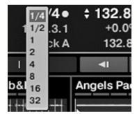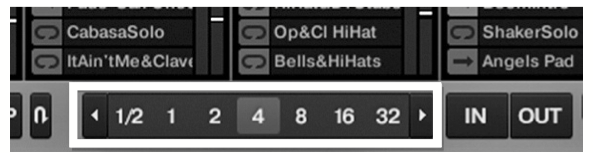 • Podemos establecer la cuantización con la que se dispararán las muestras al pulsar los botones de un controlador (o en ellas directamente en pantalla), entre 32 beats y 1⁄4 de beat, lo cual equivale a decir que se disparan de forma casi instantánea al pulsar los botones del controlador o con el ratón.