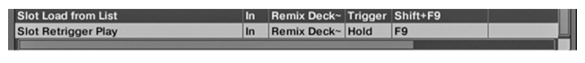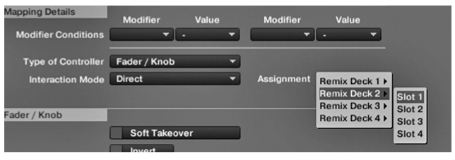 Activar esta casilla en todos los slots representará gran carga para la CPU de nuestro ordenador. Esta función la podemos mapear con el comando Add-In > Remix Deck> Slot KeylockOn. En Assignment especificaremos el numero de Remix 1, 2, 3, 4 equivalente a A, B, C, D, y el número de slot de izquierda a derecha