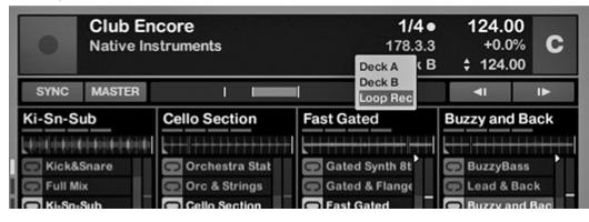 Podemos usar el Loop Recorder + los efectos de Traktor para obtener nuevos bucles para los Remix. Seleccionando luego Loop Recorder como la fuente desde la que queremos capturar, será cuestión de pulsar cualquier botón vacio de nuestro Remix Set para tenerlo cargado en un momento.